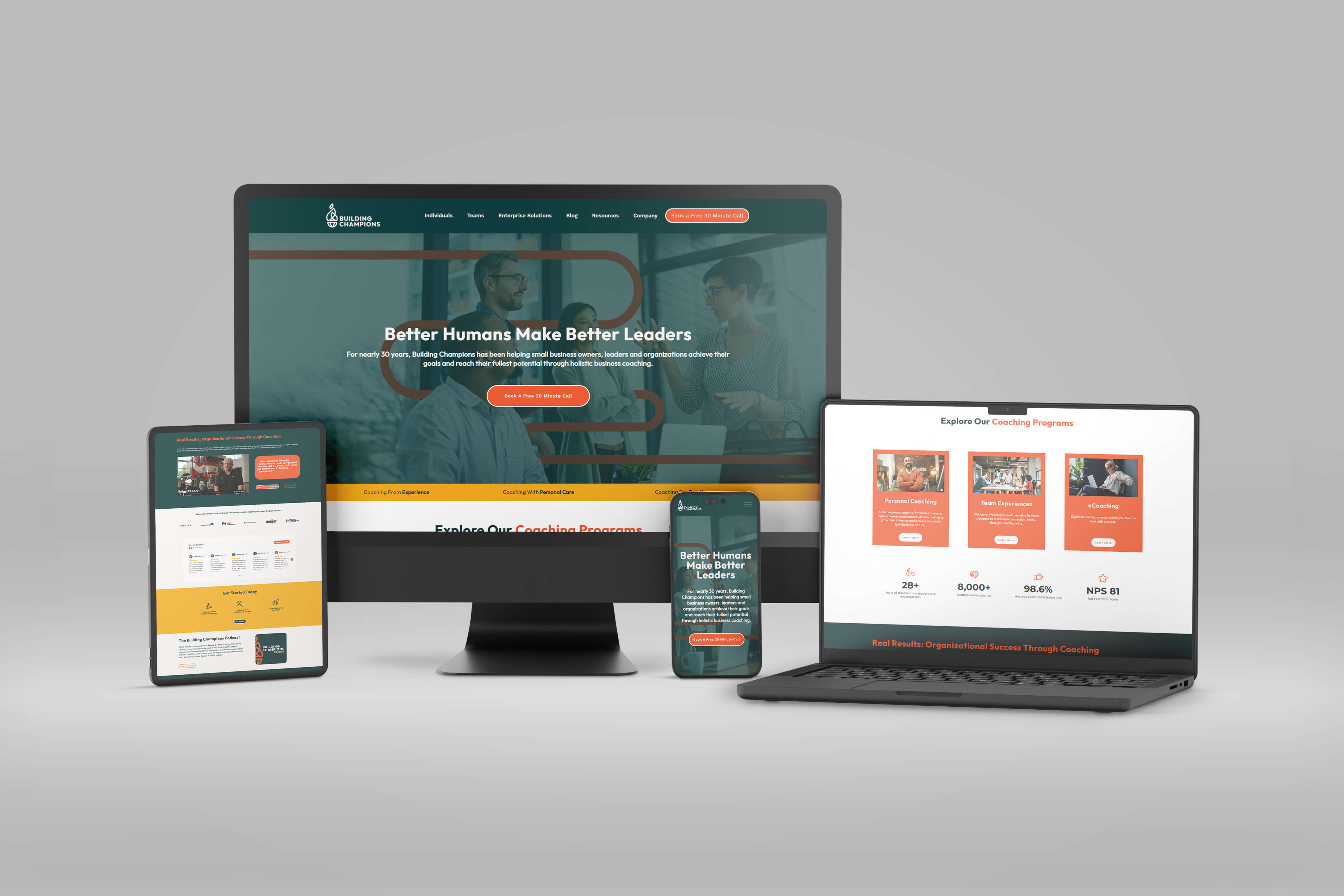 For more than 25 years, Building Champions has guided leaders, teams, and organizations toward peak performance, effectiveness, and fulfillment. With a coaching philosophy deeply rooted in whole-person transformation, their impact extends far beyond business—it helps leaders build lives of clarity, purpose, and balance. However, as the leadership coaching industry grew more crowded, Building Champions needed a brand that truly reflected their proven methodologies, trusted expertise, and powerful client outcomes.