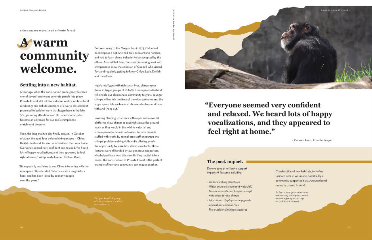 Watson Creative has had the privilege of partnering with the Oregon Zoo Foundation for several years, working through pivotal moments, including the challenges of the pandemic. From comprehensive marketing strategies to donor cultivation campaigns, our collaboration has played a vital role in advancing the foundation’s mission and enhancing the zoo’s presence in the community.